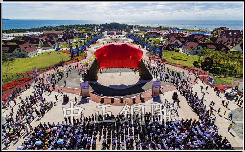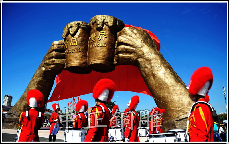 安裝于青島市金沙灘啤酒節黃島廣場,雕塑總高13.8米,重35噸,歷時3個月完工。